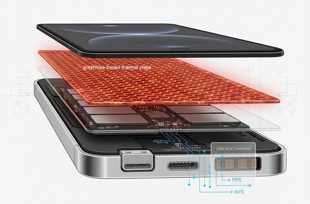 Apple’s decision to prioritize graphene reflects a system-level trade-off. As explained in analyses referenced by MacRumors and Design News, removing a vapor chamber frees precious internal space, reduces weight, and simplifies mechanical layout. The cost is reduced thermal headroom during prolonged gaming or high-wattage charging.